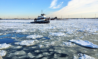 A crewmember was able to place a cell phone call around 2 p.m. to the New York Coast Guard vessel traffic services office, which made calls to initiate the search and rescue. Heavy rain and ice conditions hampered the search, which included three Coast Guard helicopters and state and Suffolk County, N.Y., police. Around 4 p.m. a Coast Guard vessel crew found the three crewmen floating together in survival suits clutching two life rings, with water temperatures around 36 degrees, and rescued them. The crewmen told the Coast Guard that they saw Capt. Maloney jump off without a survival suit.