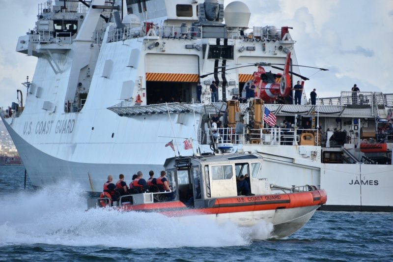 The crew of the Coast Guard cutter Donald Horsley delivers food and water to the isalnd of Vieques. Coast Guard photo.