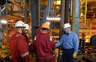 A BSEE inspector boarded the semisubmersible drilling unit Transocean Polar Pioneer before it began drilling the top section of the well at Burger J on July 30, and a second BSEE inspector is on board the drillship Noble Discoverer at Burger V, even though the Discoverer is not permitted to conduct drilling operations while the Polar Pioneer is operating.