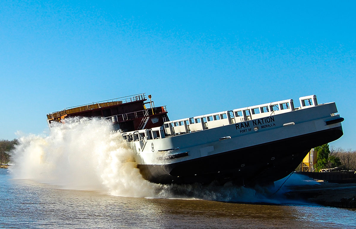 Leevac Shipyards Jennings launched the Ram Nation on Tuesday, March 18. The “splash” went as designed and the vessel was safely moored not long after. The 270' Leevac-designed PSV is the first vessel of Aries Marine's new series of 4,000 DWT PSVs.