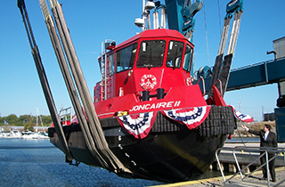 Designed by the Bristol Harbor Group Inc., Bristol, R.I., and built by Great Lakes Shipyard, Cleveland, the Daniel Joncaire II is designed to operate in the ice of eastern Lake Erie, where the waters go on into the Niagara River and hydroelectric plants. The annual ice boom installation protects the power plant intakes from being blocked by heavy ice floes.