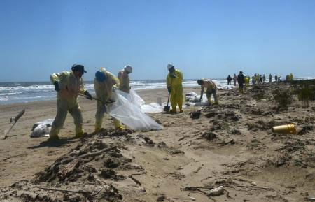 As of late afternoon Monday, crews working along South Matagorda Island have collected 610 bags of oiled debris including sand, tree limbs, seaweed, and other man-made and natural objects. Approximately one mile of shoreline has now been cleaned on South Matagorda Island. There are no reports of oil reaching Matagorda Bay.