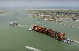 Towing 23,000 tons nearly 400 miles is quite a task. Anadarko's Heidelberg spar has been towed, upended and moored on location in almost 5,300' of water 390 miles east of Corpus Christi, Texas.