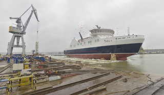 The Veteran and sister ship Legionnaire are equipped with three diesels each generating 1,700Kw to two Rolls Royce electric azimuth drives. Classed for operations in heavy ice, the ferries can carry up to 200 passengers, and are key to the government’s plan for upgrading service to remote island communities.