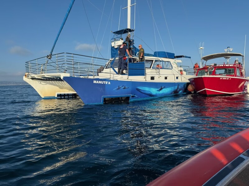 The vessel Manute’a, operated by Captain Dave’s Dolphin & Whale Watching Safari, was making way toward Dana Point Harbor when watchstanders at the Coast Guard Sector Los Angeles/Long Beach received a 6:20 p.m. distress call from the crew, reporting flooding.