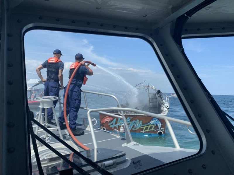 The Coast Guard responded to a vessel that caught fire approximately four nautical miles south of Perdido Pass, Ala., on July 27.