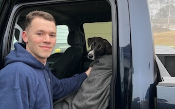 The ice rescue team quickly wrapped the dog in a wool warming blanket and checked for injuries before transporting her back to Station Kenosha.