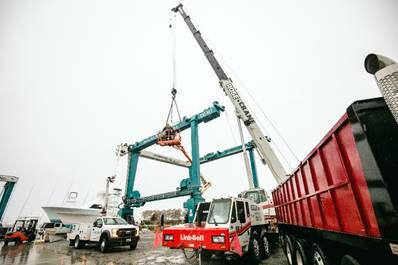 “Our first machine was a brand new 100 ton with remote control. It performed flawlessly and delivered us 15 years of trouble-free service; we are very happy,” the yard owner, John Bayliss, said in a statement announcing the travelift delivery. “As our boats got bigger, we wanted a slightly larger machine that could lift more weight yet still fit in our existing footprint. We worked with our sales rep and the [Marine Travelift] engineers to build a new 150 ton with single wheels instead of the standard double wheel configuration. We are extremely happy with our new 150 ton, and the customizations that Marine Travelift engineered for us fit our application perfectly. The single wheel 150 ton has checked all of the boxes!”
