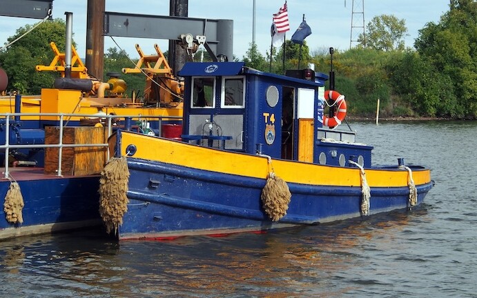 Built in 1926 by American Boiler Works, Erie, Pa., the 40'x11' Tender 4 is one of nine tenders built for the Canal Corp. in the 1920s and is the only tender of that era that is currently retired. Tenders, larger than the Canal Corp.’s buoy boats and smaller than its tugboats, were built with a shallow draft to allow greater maneuverability than the fleet’s larger tugs, while also providing more space aboard for workers and supplies than a buoy boat.