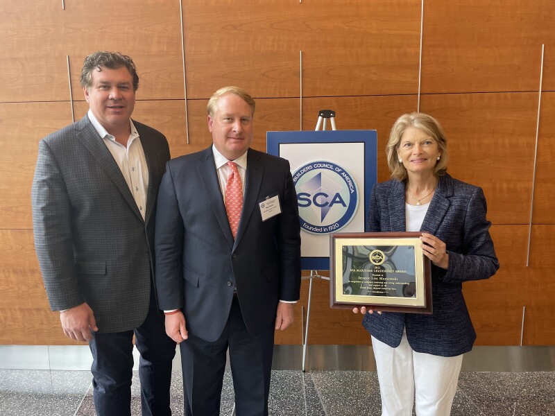 The Shipbuilders Council of America (SCA), the national association representing the U.S. shipbuilding, maintenance and repair industry, recently presented U.S. Sen. Lisa Murkowski, R-Alaska, with the SCA Maritime Leadership Award at its 2022 annual meeting.