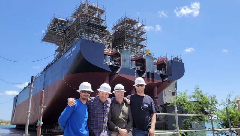 Launching the project required a deep partnership between Seatrium and Manson — the latter having already dedicated thousands of hours to the design phase with naval architecture firm Hockema Group several years prior — to see the dredge build through. To maintain a strong presence and oversee construction closely, Jordan, along with Port Engineer Sean Hayden and Project Engineer Morrgan Haack, made the pivotal decision to relocate to Brownsville in February 2021, bringing their families along for the journey.