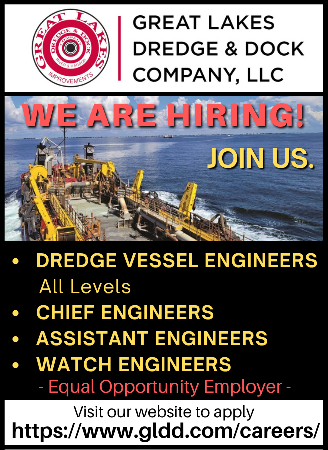Great Lakes Dredge & Dock Company is an Equal Opportunity Employer. Qualified applicants will receive consideration for employment regardless of race, color, religious creed, sex (including pregnancy, childbirth, breast-feeding and related medical conditions), sexual orientation, gender identity, gender expression, national origin or ancestry, age, mental or physical disability (including medical condition), military or veteran status, political preference, marital status, citizenship, genetic information, or other status protected by law or regulation.