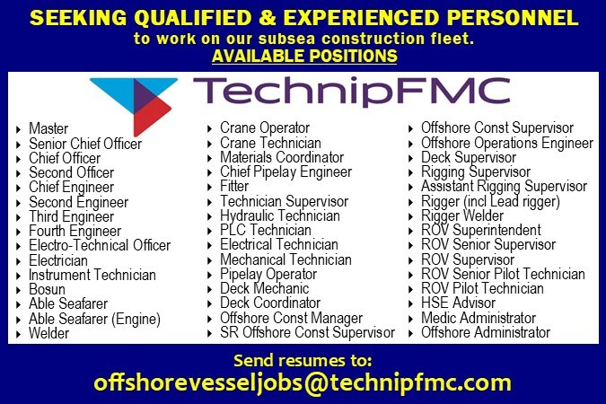 SEEKING QUALIFIED & EXPERIENCED PERSONNEL to work on our subsea construction fleet.