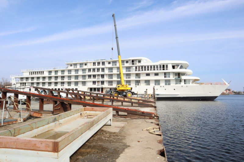 American Cruise Lines announced that its second new modern riverboat, the 269'x59' American Harmony, moved under its own power to the shipyard’s outfitting pier for final touches.