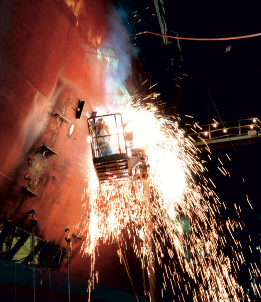 “There’s no losing work because of weather delays here,” said Mike Bell, senior vice president of operations. “My workforce is very young, and we run a lean shipyard.”