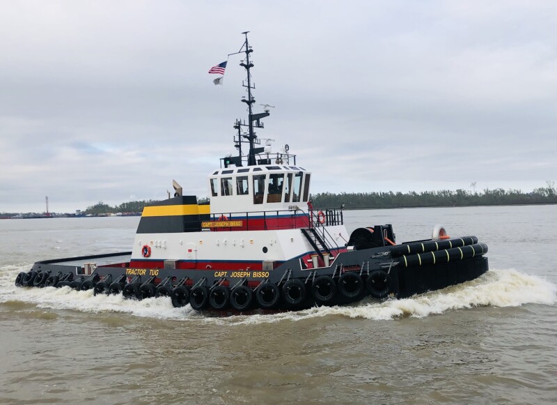 The Capt. Joseph Bisso brings the total number of tugs in the Bisso fleet to 12, all of which were built by Main Iron Works. Bisso continues its technology leadership of the Mississippi River ship-assist trade with the largest fleet of ASD tractor tugs on the Mississippi River, with nine, and the youngest fleet of tugs, with an average age of 13 years across the fleet, according to Scott Slatten, Bisso Towboat’s president.