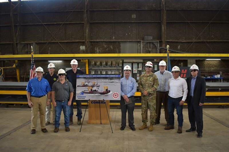 Conrad Shipyard, Morgan City, La., held a steel cutting ceremony Tuesday for two new Damen Multi Cat vessels for Great Lakes Dredge & Dock (GLDD).