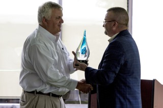 This year’s honor, the 2014 Elite Vessel Award, was presented during a luncheon held at Crowley’s headquarters in Jacksonville by MPC’s George McAfee, Ph.D., head of commercial development, marine division, and Gregg Qualls, logistics commercial manager, marine division. Crowley’s Rob Grune, senior vice president and general manager, petroleum services, accepted it before an audience of MPC executives and Crowley employees. Guests of honor included Captains Phillip Wright and Calvin Paterson, Courage/650-5 and Legacy/750-1, and Chief Mates John Crawford and Robert Cope, of Achievement/650-8 and Legend/750-2.