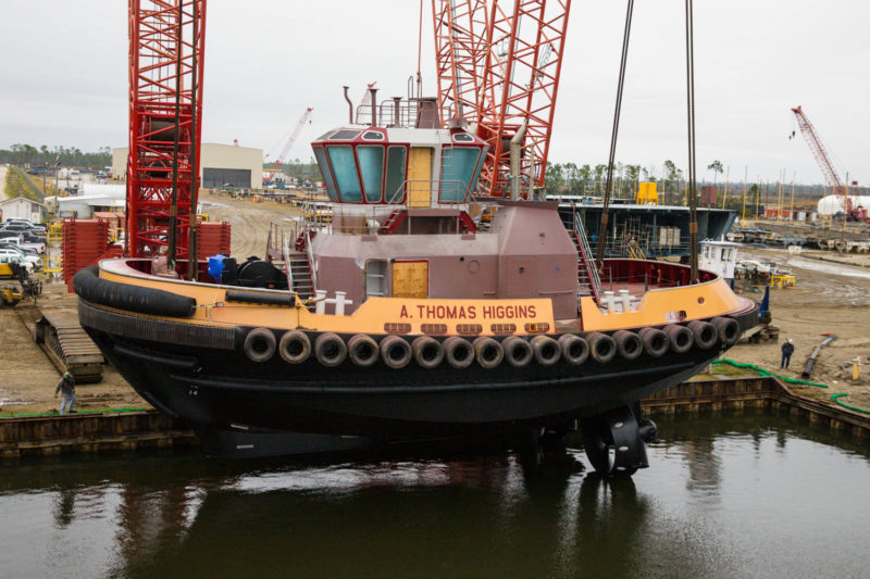 On Jan. 31, Eastern Shipbuilding Group Inc. launched the second of two 80'x38'x13'2" 5,100-hp Z-drive tugs, the A. Thomas Higgins, for Bisso Offshore LLC, a division of New Orleans-based E.N. Bisso & Son Inc.