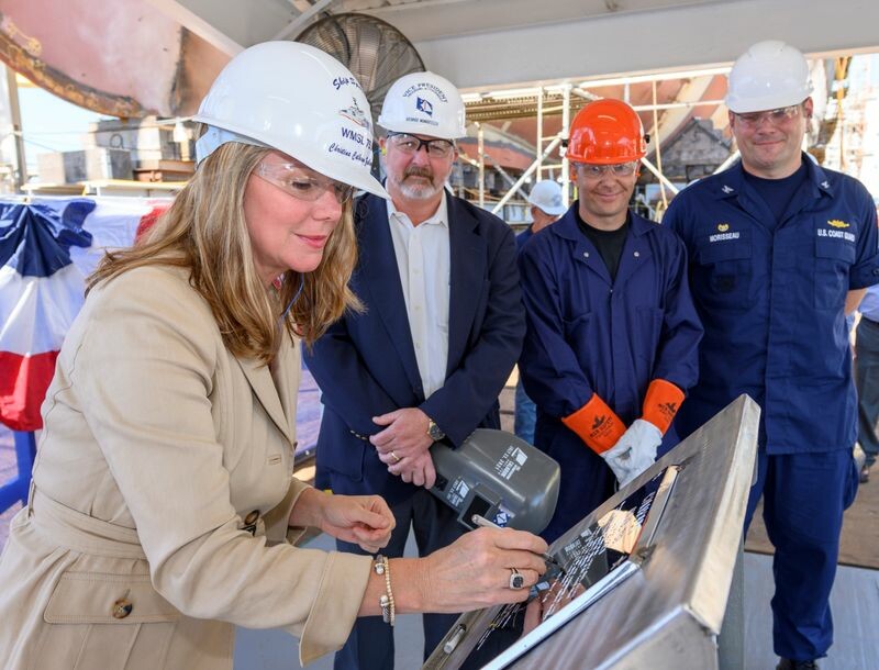 Huntington Ingalls Industries’ Ingalls Shipbuilding, Pascagoula, Miss., division ceremonially authenticated the keel of 418' Legend-class national security cutter Calhoun (WMSL 759) recently.