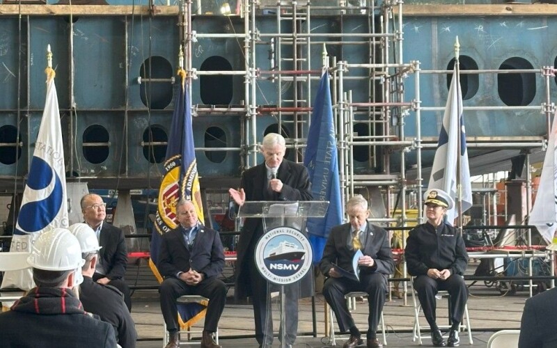 A keel laying March 5 marked the start of the fifth and final vessel in the National Security Multi-Mission Vessel (NSMV) program. The Maritime Administration’s NSMV program is delivering a new generation of training ships for U.S. maritime academies that can also support humanitarian assistance and disaster relief missions.