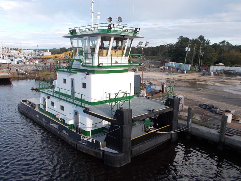 Gulf Coast Air & Hydraulics Inc. will provide a pair of Quincy F325 reciprocating air compressors and ventilation fans. Schuyler Maritime LLC will provide all 18"x12" rubber fendering around the entire perimeter of the vessel and push knees. Outfitters International will provide a Daiken mini-split heat pump HVAC system in all interior spaces with Blakeney Marine providing all custom woodwork and interior finishes.