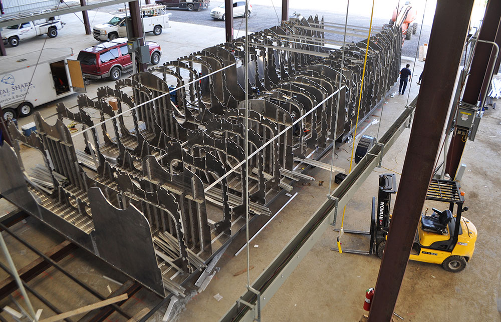 In January, Metal Shark acquired a 25-acre waterfront tract situated on the Charenton Bypass Canal in Franklin, La., and announced plans to develop the new property into a facility to support its planned aluminum and steel shipbuilding efforts for vessels up to 250'. Six months later, the new facility is operational and production of its new Endurance-class catamarans is underway.