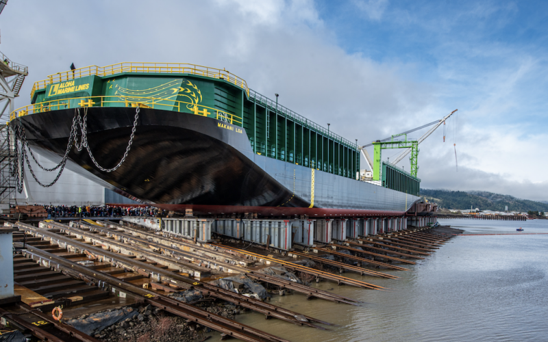 The Makani Loa was constructed at Gunderson Marine & Iron, Portland, Ore., and launched there on March 2. The Makani Loa is a sister barge to the Kamakani and Namakani barges which were added to the fleet in 2020. Together, they represent Aloha Marine Lines’ family of Makani Class barges that will continue to maintain regular, bi-weekly barge service between Seattle and Hawaii.