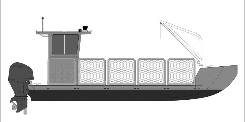 Designed by Waterline Systems (dba US Watercraft), the vessel will be equipped with a powerful custom electric davit, flush deck, and 12" freeboard to facilitate retrieval of the 50-lb. oyster baskets. The crew will winch up the baskets and slide them on deck quickly, safely, and efficiently.
