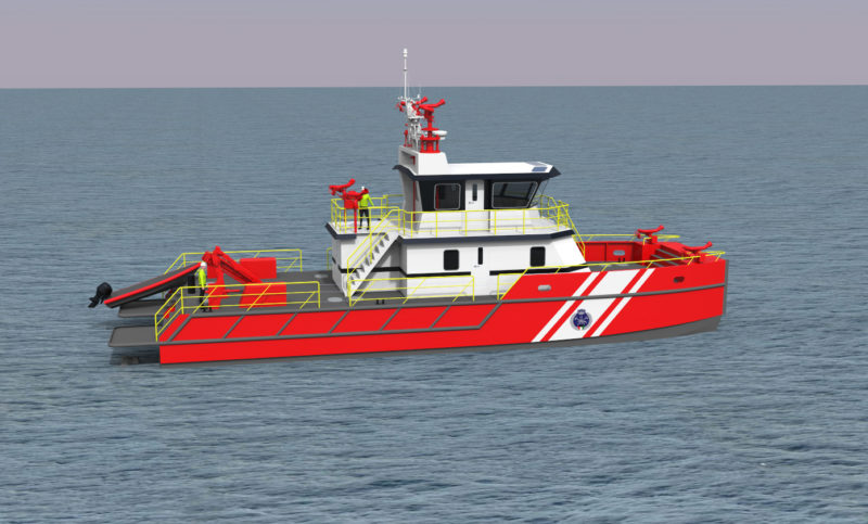 The FiFi vessel will be equipped with two MTU engines delivering speeds of up to 25 knots. She features a twin-storied wheelhouse which will provide excellent visibility, will carry four crew, and is fitted with four berth cabins, medical room, and equipment storage space. She also uniquely boasts six monitors, which deliver 11,000 gpm.