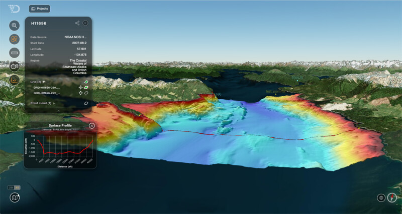 The AO platform ingests bathymetric and subsea datasets from multiple sources, including Terradepth’s own long-range diesel-electric AUV, third-party contractors, operator-owned vehicles, and public datasets such as NOAA surveys, and centralizes them into a single enterprise system.