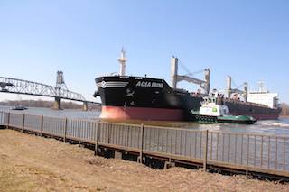 The 623'x106' Agia Irini, a bulk carrier ship of 33,044 tons displacement, had been heading south down the river at around 6.3 knots and drawing 32' when it lost propulsion, according to the Coast Guard and vessel tracking records at MarineTraffic.com.