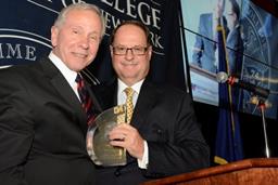 Bouchard Transportation President and CEO Morton S. Bouchard III was honored at Maritime College’s annual Admiral’s Scholarship Dinner for his continued support of the college and its students. In recognition of the occasion, Mr. Bouchard announced plans for the construction of an on-campus dormitory to house visitors to the Bouchard Transportation Company, Inc., Tug & Barge Simulation Center currently in development on the Throggs Neck, N.Y., campus.