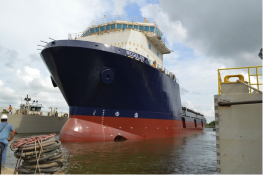 Thoma-Sea Shipbuilders, has launched the Regulus a DP 2, FiFi I offshore supply vessel from its Houma, La., shipyard on May 27. The 272' OSV was built to service deep water oil and gas exploration. The vessel has two 2000kW Z-drives and two 850kw bow thrusters powered by a total installed power of 7.35MW. The vessel can carry a maximum deadweight of 3,650 LT and can achieve a maximum speed of 14 knots. The owner of this vessel is GulfMark Offshore.
