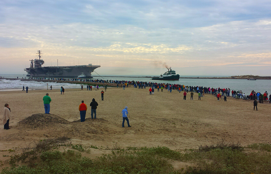 The Kitty Hawk-class aircraft carrier was delivered Friday, Jan. 16, to International Shipbreaking Ltd., of Brownsville, Texas, by the oceangoing tug Corbin Foss, which began the 16,000-nautical-mile journey from Bremerton, Wash., on Aug. 8.