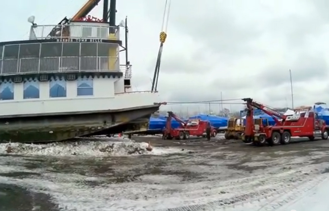 This video shows the 128-passenger tour boat Harbor Town Belle being hauled for its five-year Coast Guard inspection. The authentic 80' paddlewheel powered tour boat is based in Rochester, N.Y.