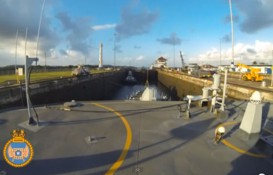 In this time-lapse video, HMS Richmond transits the Panama Canal eastbound.