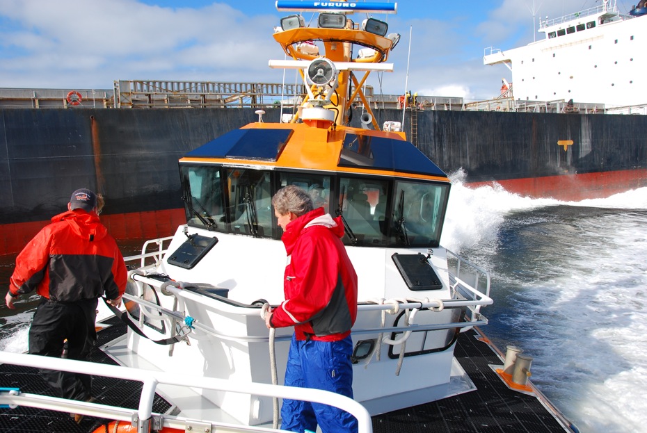 To say that I was impressed with the professionalism of the operations and the capability of the boat, which was designed by Camarc Design in the U.K. and built by Kvichak Marine Industries in Seattle, is an understatement. Driving up to the side of a ship in typical bar conditions and holding it in position while the pilot grabs the dangling ladder or when he jumps from the ladder to the deck of the moving pilot boat demands precision and power. For the bar pilot, it requires strength, good timing and courage.