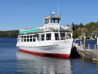 We boarded the 57' Mt. Sunapee II on the maiden voyage of boat’s 49th season. Capt. Kipper Brown (who has worked on the boat since he was 14) began his narration with a bit about the boat. She was built in 1966 by Gladding-Hearn in Somerset, Mass. The fresh paint may have had something to do with it, but the boat looked remarkable for being close to 50. As my guide pointed out, fresh water is only part of the reason. The season is short in New Hampshire and the boat spends much of its time shrink-wrapped on a railway while Lake Sunapee freezes to 4' thick in winter.