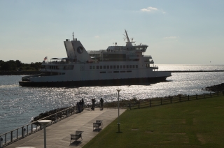 Berthed at the Cape May (N.J.) Ferry Terminal, Twin Capes was declared surplus property in July 2010 and operated summers only through 2013 on the 17-mile crossing between Delaware and Cape May. The 320’x68’ double ender ferry, built in 1974 at Todd Shipyards in Houston for $3.9 million, can carry 895 passengers and 100 cars on lakes, bays and sounds