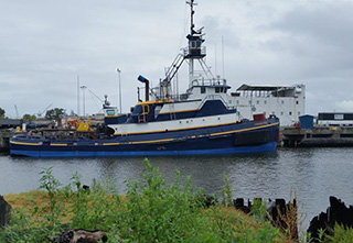 The Carolina Coast. Dann Marine photo.The Carolina Coast is 118'x33'x18.5' and is powered by two 12-251C Alco turbos. Built in 1970 at Bludworth Shipyard in Corpus Christi, Texas, the Carolina Coast has worked her way through the Gulf under some well-known company flags including Halliburton and Zapata. Then she came to Baltimore to run containers where Allied bought her. Currently, the boat is at Colonna Shipyard in Norfolk, Va. undergoing modifications to regain fuel and water capacity that were lost in prior modifications.