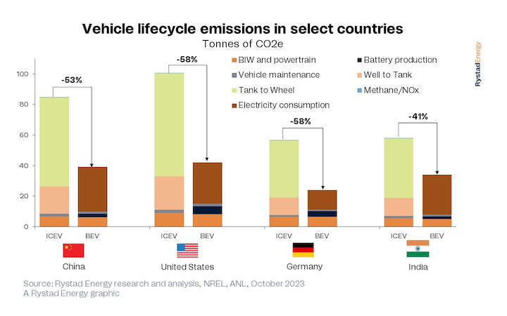 “Overall, battery electric vehicles are clearly the right technology to reduce emissions in the transportation sector. Switching to a BEV will reduce long-term emissions despite a larger environmental impact at the beginning of the vehicle's life. Contrary to some claims, electric car adoption is not a fool’s errand; it will slash emissions in the long run and accelerate the energy transition,” said Abhishek Murali, senior clean tech analyst with Rystad Energy.