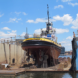 Hays said the boat was in for an ABS inspection and repairs to areas of the hull damaged by ice. "Last winter was very harsh here on the Delaware," she said, adding that the Hays fleet works 365 days a year on the twice daily service that the company provides to the city of Philadelphia. Two city-owned sludge barges rotate between the sewage treatment plant in the northern part of the city and the Renewable Bio-Fuels Facility on the Schuykill where it is processed into fertilizer. The program is a source of pride for the city which boasts that 100% of its waste water is recycled.
