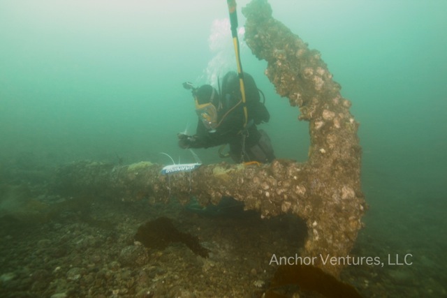 The “may have” refers to a controversy about the location of the anchor. Most historians have believed that the Chatham lost its anchor somewhere farther north. Log books show that an anchor was indeed lost from the Chatham at that time, but the location was assumed to be in Bellingham Channel, about 30 miles from the mystery anchor.