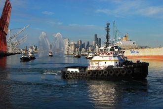 The new tug will soon join Harley Marine’s fleet of shipdocking tugs in Southern California. It’s a powerful and impressive vessel. Long may she run.
