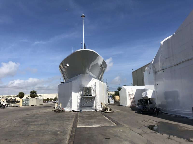 “We call ourselves a full-on working shipyard. We are a full service yard with multiple boats and multiple customers,” said Derecktor project manager Mark Russell. “We’re not a resort shipyard or a destination yard.”