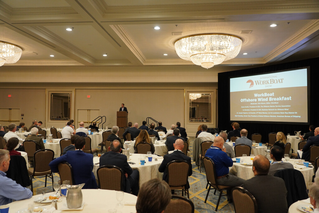 Sessions discussing offshore wind attracted big audiences at the International WorkBoat Show in December. One recurrent theme was impending shortages of suitable workboats for building and operating offshore wind turbine arrays — and whether the new industry requires using foreign-flag vessels.