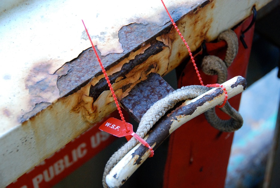 About a month ago, just after Mother’s Day, a Seattle newspaper columnist, Knute Berger, aka Mossback, wrote a piece deploring visible rust on our local ferries. “Welcome to Seattle,” he wrote in Crosscut, a daily online publication, “home of the rust-bucket.”