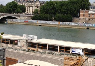 Barges here have connotations far beyond workboats. This being Paris, people here live on them, eat on them, work on them, drink on them, sleep on them and dance on them. There are floating cafe barges, restaurant barges, nightclubs, and pool barges. And there's a plan before the Mayor of Paris to create four floating farm barges that would grow vegetables and become a much-welcoming plot of green in the city center.