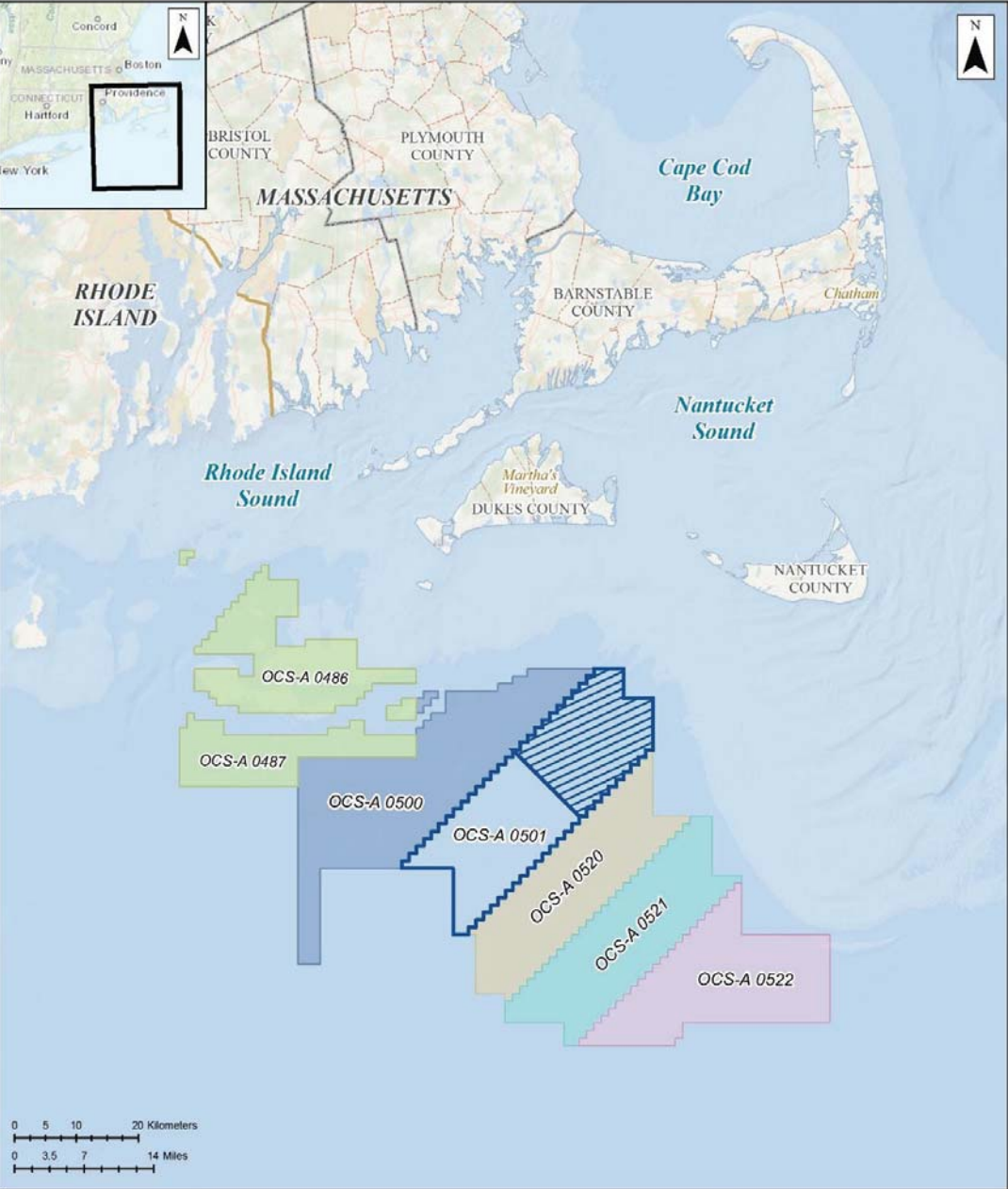 The proposed Vineyard Wind South project includes up to 130 wind turbine generators, two to five offshore substations, inter-array cables, and up to five export cables connecting to the onshore electric grid in Barnstable County, Mass., at up to three onshore substations.